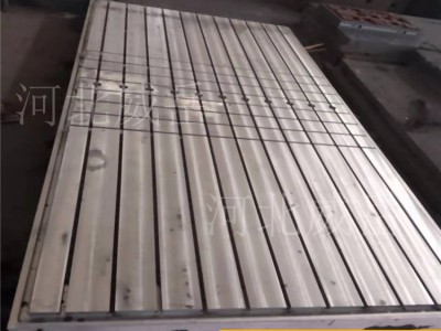 T型槽铸铁平台是用来进行工件的铸铁工艺,和铆焊平板不同,上面没有孔,工作面为平面或T型槽。主要用于检验、测量、铆焊、铸铁、划线、装配、组装、动力机械试验等。